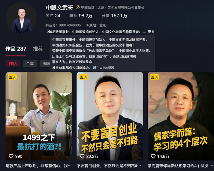 在“中酿文武哥”的账号里,看不到硬邦邦的产品推销,只有文化讲解、行业思考和品牌故事。不仅进一步推动了白酒行业的文化引领与民族白酒品牌复兴进程,也以专业的角度带领广大消费者领略中国白酒的魅力。