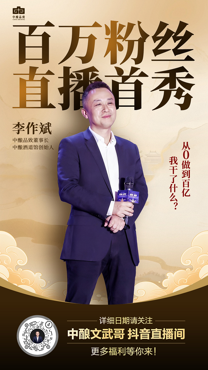 10月12日,李作斌——这位中国文化老酒龙脉探寻者,将在抖音ID开启中酿文武哥粉丝破百万首场直播,与百万粉丝聊文化、聊老酒,来一场中国白酒龙脉探寻之旅!