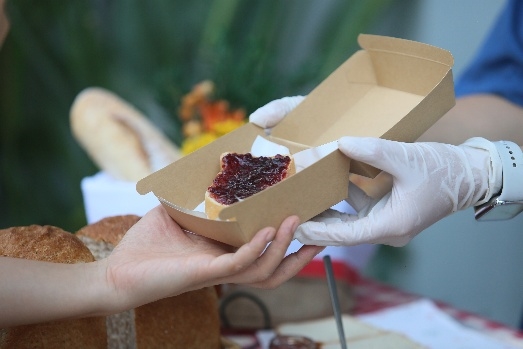 9月25日到9月30日,每天12:00到14:00,LANLIZI BAKERY仁和新城店外蓓妮妈妈主题餐车处,都会准时开启「麦田爱心面包箱」公益活动,店内师傅会将刚出炉的联名面包进行分切打包,每天免费发放80份,并附赠蓓妮妈妈果酱供现场涂抹搭配食用——草莓、树莓、杏子等实现多种口味自由搭配。
