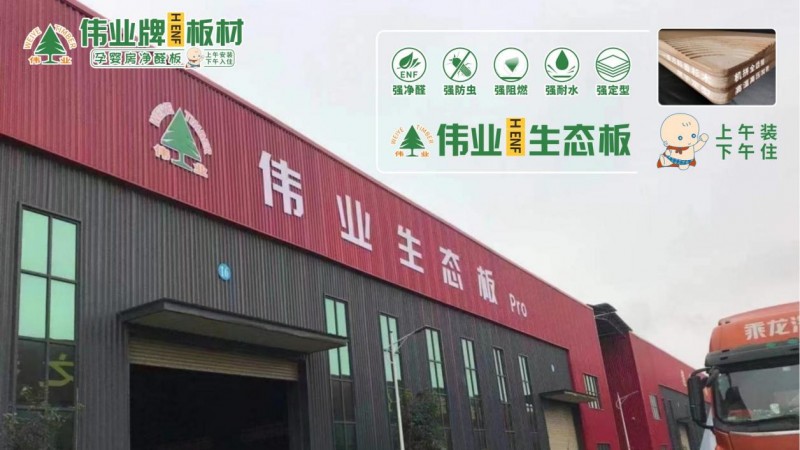 ☑创新产品:伟业HENF五强板,以创新胶水“无机生态胶”生产,具有强净醛、强防虫、强阻燃、强耐水、强定型5大优点,引领行业发展。