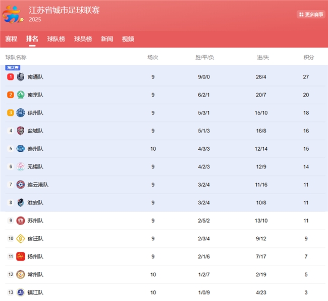 八月的江苏大地,一场属于城市的足球狂欢正在上演。随着8月30日"苏超"第十轮全面开战,这项中国城市足球联赛的标杆赛事再次引爆全民热情。积分榜上,南通队以微弱优势领跑,徐州、南京、盐城三队仅差1分形成"三足鼎立",中游球队积分差最大不过3分,即便是排名末段的队伍仍保有晋级希望——如此胶着的战局,让每一轮赛事都成为牵动百万球迷神经的"生死战"。