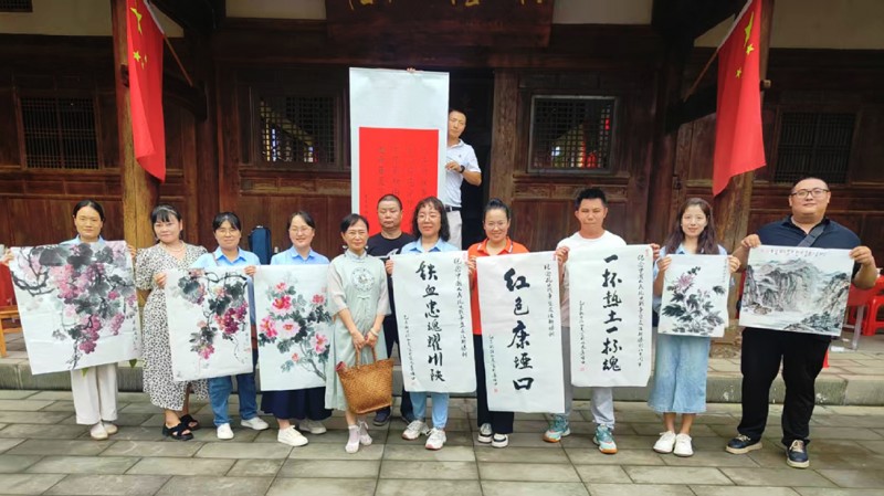在中国人民抗日战争胜利80周年纪念日之际,四川省阆中市二龙镇康垭口村(红军村)近日举办了一场以“传承红色精神,共贺抗战胜利”为主题的艺术慰问活动。阆中市美术家协会与书法家协会组织艺术家代表积极参与,以书画艺术弘扬红色文化,传递人文关怀。