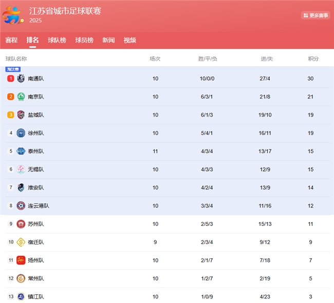 与此同时,“苏超”其他场次也战况激烈。目前积12分的连云港队、积11分的淮安队和积9分的宿迁队,分别位列积分榜第7、第8、第10位,积分差距微小,每一场比赛的胜负都可能改变8强格局。苏州队本场未能全取三分,无疑为淘汰赛席位增添了更多悬念,也让后续比赛更具看点。