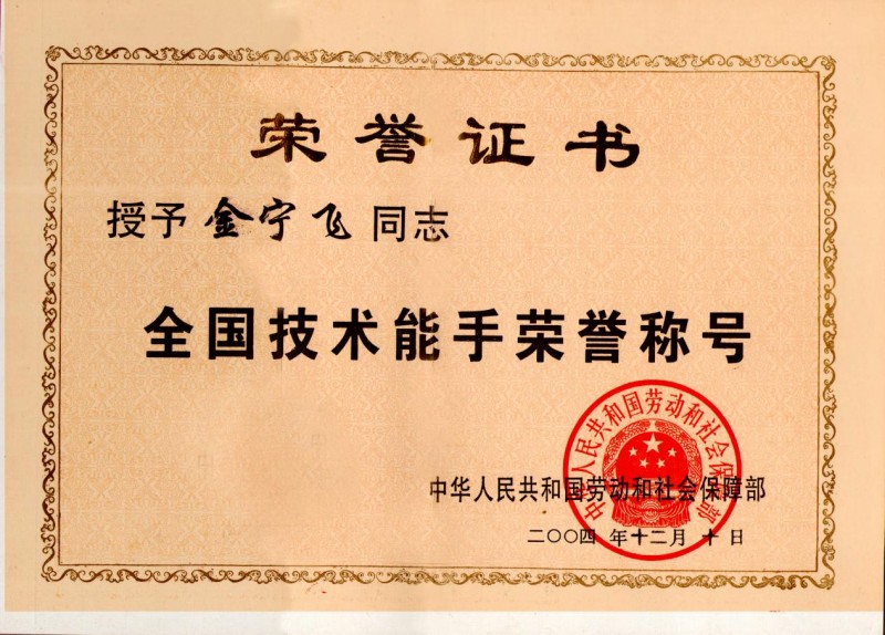 机遇总是偏爱有准备的头脑。1986年,金宁飞开始钻研食品雕刻。对食品雕刻的浓厚兴趣与刻苦钻研,让他在闽菜培训班上遇到了享有“闽菜雕刻第一刀”美誉的陈松俤大师,并顺利拜入其门下。1988年,他机缘巧合结识了强木根大师,经推荐进入原国家商业部饮服司闽菜培训站全国班深造;在参加培训班时还要兼顾工作,有时只做笔记,或只等老师示范完就匆忙回酒楼上班,培训班学员给他取了一个亲切的外号叫“记者”。就这样,金宁飞凭借他原有的扎实基本功和勤奋好学的品质,取得了理论和实践第一名的成绩;1991年,在福州大酒家闽菜培训班,他以班长身份、第一名的优异成绩毕业并唯一留下来担任兼职教师。后来,他更通过自学取得了大专和本科学历,弥补了早年失学的遗憾。从天都菜馆的炒锅起步,历经生猛海鲜酒楼、人人海鲜酒楼、福建闽华酒家、红贵族酒楼、福建昌鑫大酒楼、福州三宝休闲农场综合开发有限公司、温泉宾馆等多家名店,到担任厨师长行政总厨、技术总监,炉火熊熊四十载,他用汗水与执着,将青衿之志淬炼成真金。上世纪90年代,喜欢看书的金宁飞不断学习理论知识、模仿各种菜系的原料和烹饪方法然后进行改进融合创新,经过近10年的烹调工作的金宁飞,无论是技术,还是创新能力,都在不断突破自我。这十年里,或许只有他自己知道用坏了多少把刀,换了多少个菜板,受到过多少次表扬,熬了多少次夜。这十年他一直秉持初心,晨昏连接埋首灶台,寒来暑往未曾懈怠,在千万次练习中不断成熟,淬炼出精准的技艺和从容的心态。1995年,在福建省首届“闽都杯”食品雕刻大赛上,他以“腾龙”自选作品和“鸟语花香”指定作品,在全省100多名参赛的雕刻高手中,以总分全省第三名的优异成绩获得了赛事的金牌。