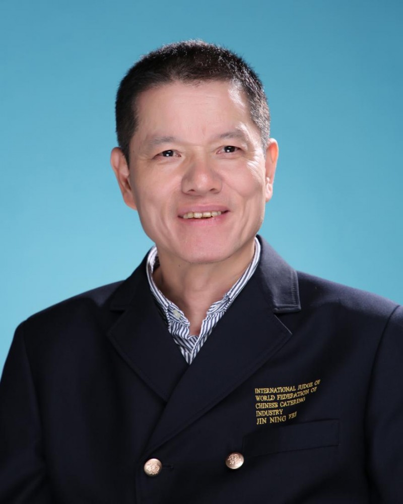 金宁飞,中式烹调高级技师,国家级技能大师工作室领办人,注册中国烹饪大师,中国药膳大师,身兼世界中餐业联合会高级国际评委、国家职业技能竞赛A级裁判员,现任福建省餐饮烹饪行业协会副会长、福建省营养师协会副会长、福建省饮食养生协会副会长、福建省叁号餐饮管理有限公司技术总监、味中懿餐厅出品总监、福建技术师范学院客座教授,将闽菜薪火燃遍五洲。四十年灶火不熄,他以一双手雕琢闽菜的魂魄,以万卷书沉淀烹饪的哲思。从闽江畔的贫寒少年,到执掌国宴接待外宾;从捏煤球、洗鸡肠的学徒杂工,到桃李满天下的行业领军人物;从埋头苦练基本功,到攻坚创新百余道新闽菜,金宁飞的人生传奇,是一部以“不怕吃苦、勤奋克己、坚持学习、努力拼搏”写就的奋斗史诗。他珍藏的六千册烹饪典籍,见证了他对知识的渴求;他谦逊如初的品格,诠释了真正的“工匠精神”;他以推动闽菜走向世界的执着,彰显着文化传承者的使命与担当。他是闽菜技艺的集大成者,更是中华饮食文化星空中一颗璀璨的星。