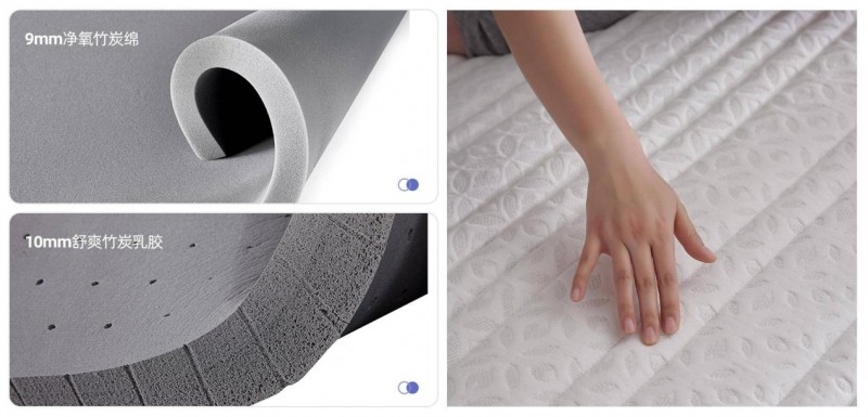 净氧竹炭绵+舒爽竹炭乳胶,双重舒缓承压系统,层层稀释重力,温柔包裹身体,缓解疲惫。竹炭因子能有效吸附异味,去湿吸汗恒温调湿,时刻保持睡眠干爽,还具有抗菌防螨的功能,营造更洁净的睡眠环境。微秒级动态支撑系统,高预压独袋弹簧,精准承托身体各部位,无论仰卧或侧躺都紧密贴合。无纺布柔声包裹弹簧,减少摩擦噪音,保障深睡不受打扰。