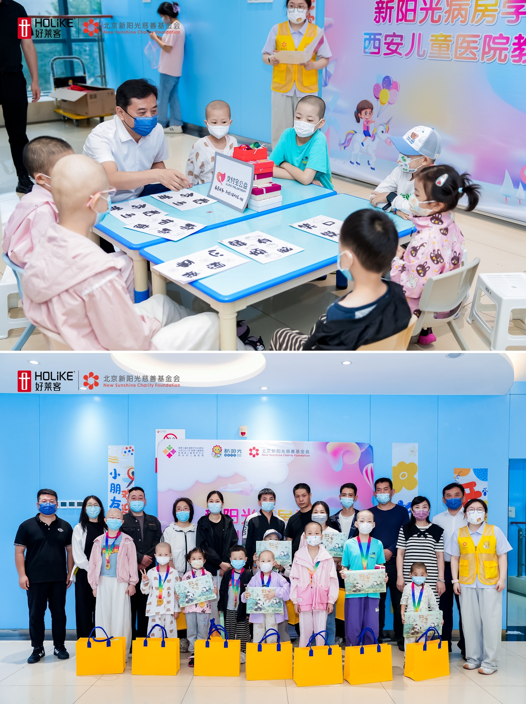 九月的西安,秋意渐浓却暖意不减。9 月 5 日,好莱客与北京新阳光慈善基金会携手打造的西安市市儿童医院新阳光病房学校,以“童梦新程,悦享长安” 为主题,迎来了温馨的开学典礼。西安市儿童医院血液肿瘤科王华主任、北京新阳光慈善基金会新阳光病房学校项目副总监王然、好莱客总部代表郑起鹏等嘉宾共同出席,与众多爱心人士一道,陪伴孩子们一同见证这场充满民族温情的开学时刻。