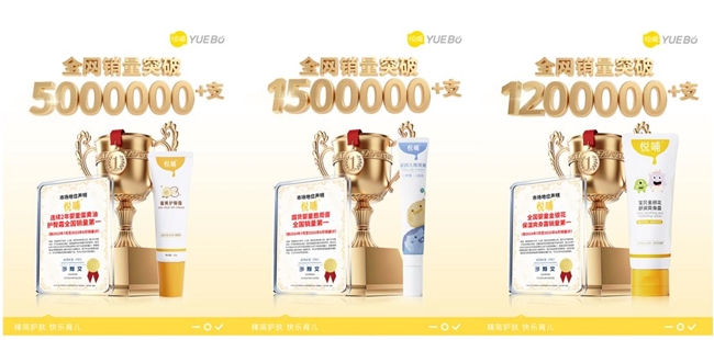 数据显示,悦哺蛋黄油护臀霜全网销量已超过500万支,悦哺婴幼儿唇周膏全网销量超150万支,悦哺宝贝金银花舒润爽身露全网销量超120万支。
