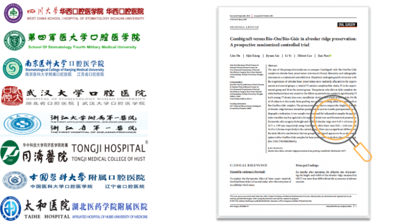 【傲塑】骨填充材料与国内8家顶尖口腔医院密切合作,有20余篇相关权威文献支持。