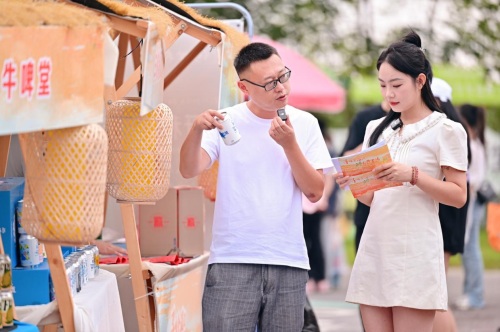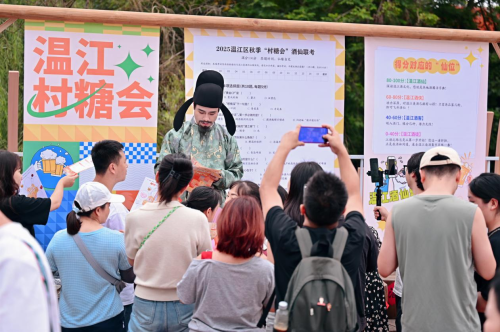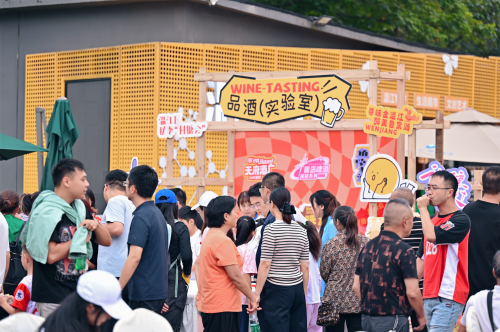 广大市民游客如何玩转“村糖会”?活动现场精心设置了沉浸式游园打卡活动,有人跟着“嫦娥”举杯对饮邀明月,有人在品酒实验室DIY调酒,还有人通过酒仙联考等小游戏,获得美酒、美食、消费券等诸多惊喜好礼,把游玩与实惠变成双向奔赴,形成了沉浸式体验、互动式游乐、联动式消费的 “吃、喝、玩、乐、购”闭环。