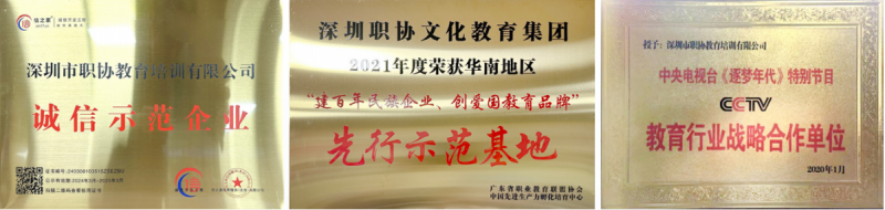 这份坚守与诚信,为职协教育赢得了社会各界的广泛认可,荣誉墙上的一块块奖牌熠熠生辉,见证着企业的成长与辉煌。自2009年荣获宝安区“劳务工初次上岗”培训先进单位以来,职协教育几乎每年都有收获荣誉:2010年获宝安区“百万员工素质提升行动”培训先进单位;2012年获宝安区户籍居民就业创业“金钥匙行动”培训先进单位;2014年获深圳市“重诚信、有爱心”百佳先进单位;2016年获评广东省民办教育“一带一路”奋进有为奖;2017年荣获中国教育培训管理创新先进单位;2018年荣获中国民办教育产教融合双创示范单位;2019年获中国民办教育优秀领导品牌;2020年获央视栏目组特邀百佳访谈单位;2021年评为华南地区“建民族百年企业、创爱国教育品牌”先行示范基地、“立信企业”称号;2022年获评“全国重合同守信用优秀企业”“信守承诺企业”称号;2023年获评“守信经营者”称号;2024年获评“诚信示范”企业。此外,单位曾连续多次被官方媒体宝安日报、深圳都市网、大湾区时报、广东教学报等宣传报道。