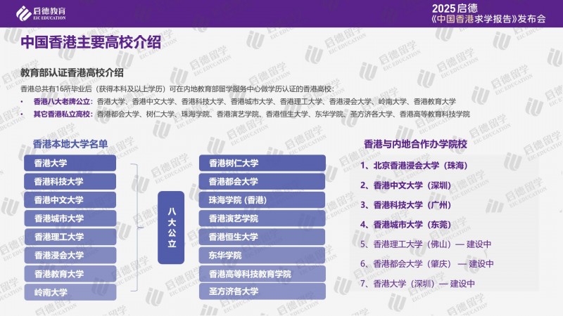 根据《QS 2024国际学生调查报告》对14,138名中国内地意向留学生的调研,香港成为内地学生首选的第二大留学目的地。2025年9月13日,启德教育在北京发布《2025中国香港求学报告》,这也是启德教育连续第六年发布香港求学报告。报告基于启德留学2025年入学季近九千份香港高校录取数据,系统整合了赴港求学的政策环境、教育体制、申请策略及就业前景等信息,旨在为有意赴港深造的学生及家长提供一份全面、专业的“百科全书式”参考指南。