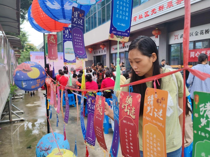 文艺表演结束后,趣味游园环节紧接着开启,设置“中秋猜灯谜”与“套圈赢好礼”两大互动游戏。灯谜区挂满中秋主题谜题,居民们三五成群共同思考、踊跃竞猜,猜对者收获月饼奖励;套圈区前更是排起长队,居民们瞄准心仪的月饼、生活用品等奖品,凝神投掷,套中的居民欢呼雀跃,现场充满欢声笑语。