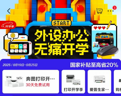 不仅如此,为了满足开学季期间旺盛的打印机购买需求,京东也同步在线上开展了外设办公无“痛”开学活动,带来了海量爆款外设好物,用户领国家补贴下单可省20%,正品价更低。无论是想要家中常备一台作业打印机,还是打算趁机低价囤一波打印耗材,或者想要换新键鼠等办公好物,京东都能满足用户所需。打开京东APP搜索“打印开学季”即可进入活动会场,心动的朋友不要错过。