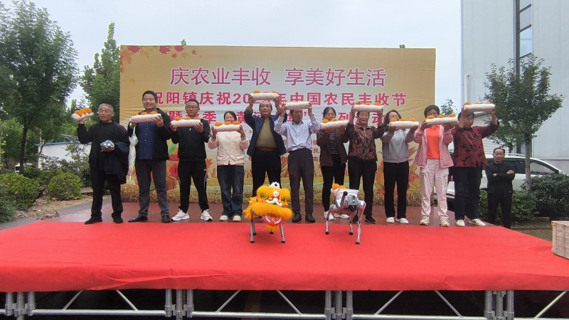 活动现场,热闹非凡,文艺汇演精彩纷呈。开场大鼓表演震撼亮相,鼓点铿锵奏响丰收序曲,人工智能机器狗现身活动现场硬核助力,拉开活动帷幕,一开场就吸引了大批群众。《在希望的田野上》歌声悠扬,唱出对家乡、对土地的热爱与对美好生活的向往;广场舞《中国美》活力满满,跳出新时代农民的精神风貌;“农民T台丰收秀”是重头戏,永乐食用菌金耳菌包、麻峪村葡萄、吴家庄村酥梨等特色农产品种植户代表化身“超模”,手举自家种植的农副产品自信走上T台,用最接地气的方式展现丰收成果,传递丰收喜悦。