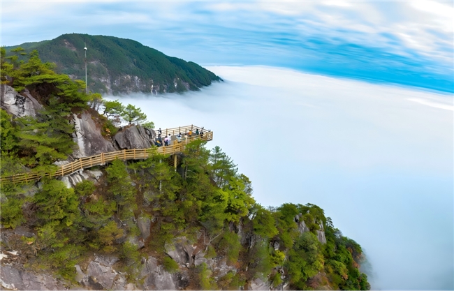 登高首选青云栈道,3100 米的栈道沿绝壁蜿蜒,脚下是万丈深渊,身旁是层林尽染的山岳,登顶后极目远眺,可见峰峦如黛、云海翻腾,将 “苍松斗妍、山花织锦” 的四绝景观尽收眼底。待到夜幕降临,明月升空,景区 “以月亮情吸引人” 的理念在此刻具象化 —— 山月相融的意境愈发浓郁,坐在山间石阶上,听松涛阵阵,看月色洒在竹海与飞瀑上,偶有流泉潺潺入耳,构成秋日最惬意的 “人月共欢” 图景。