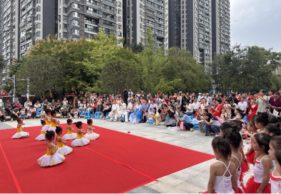 活动现场热闹非凡,文艺节目形式多样、精彩纷呈。歌舞表演活力四射,演员们用灵动的舞姿和嘹亮的歌声传递着对祖国的祝福与对美好生活的向往;传统技艺展示独具韵味,让居民在欣赏中感受传统文化的深厚底蕴。每一个节目都精心编排,既有对家国情怀的深情抒发,也有对传统文化的生动展现,台下掌声与欢呼声此起彼伏,充分点燃了居民们的参与热情。