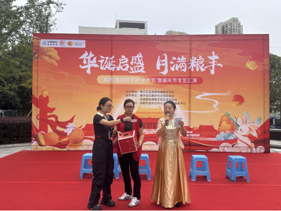 金秋送爽,丹桂飘香。在中秋、国庆双节即将到来之际,为丰富社区居民精神文化生活,增进邻里情谊,营造欢乐祥和的节日氛围,2025年9月26日上午,成龙路街道粮丰社区携手成都市金牛区同心之源社会服务中心,在创意山广场成功举办“华诞启盛,月满粮丰”欢庆“我们的节日·中秋节"暨国庆节文艺汇演。社区居民欢聚一堂,在悠扬旋律与欢快氛围中提前共度佳节,感受邻里间的融融暖意与社区的蓬勃活力。