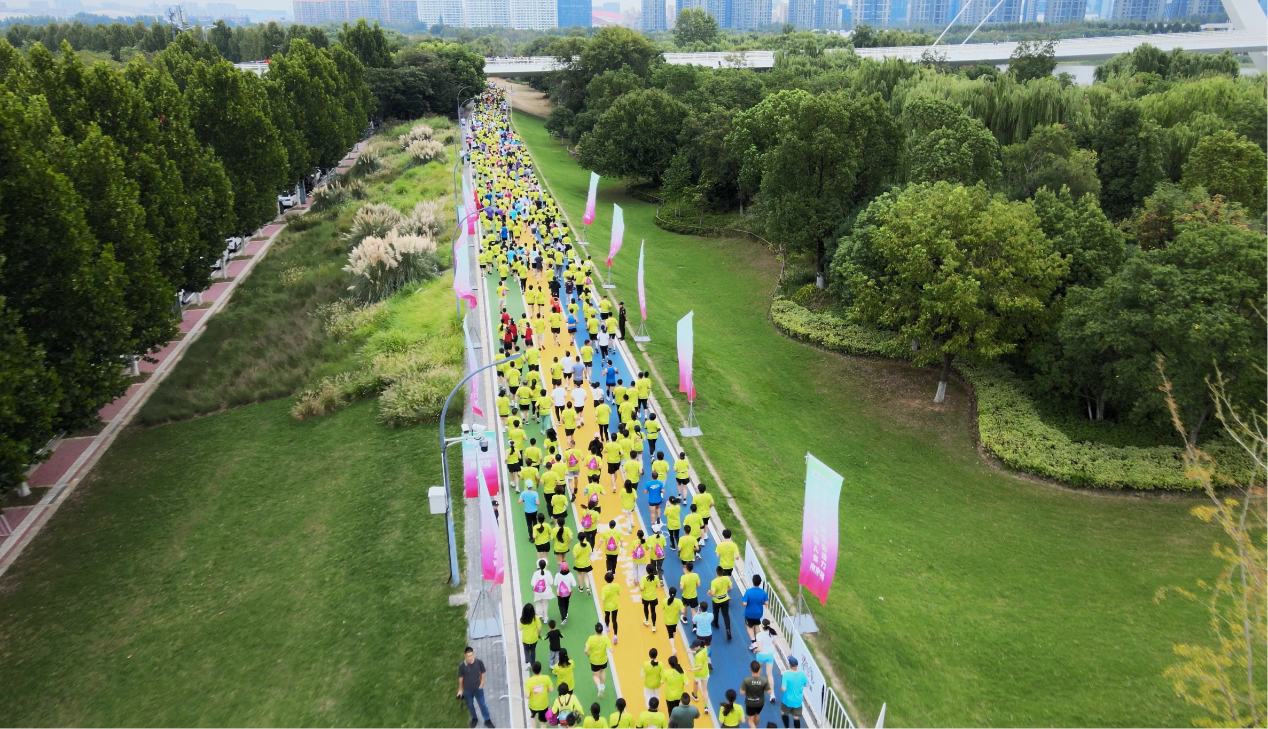 赵蕊蕊参加南京站的活动南京站设10公里和5公里两个项目,赛道沿中新南京生态科技岛环岛智慧跑道而设,选手们不仅可以饱览生态科技岛的旖旎风光,还能感受现代化生态科技、自然美景与全运氛围的完美融合,形成一条色彩绚丽的流动 “长河”。比赛期间,许多晨练的市民自发来到赛道两侧为选手们加油呐喊,此起彼伏的助威声营造出热烈气氛。