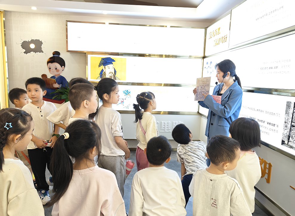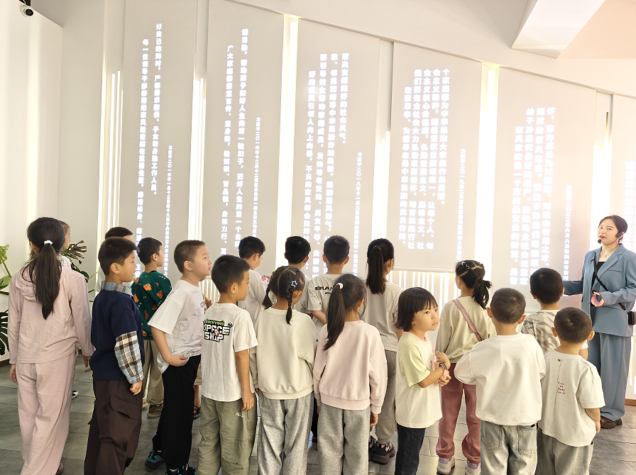 活动从川江家风馆的来历讲解中正式拉开帷幕。讲解员用孩子们听得懂的童真语言,细致解读“川江”二字的内涵,将川江流域的历史脉络、文化底蕴与家风传承、家国情怀紧密串联,层层递进的讲解让抽象的“家国”变得具体可感。孩子们挺直小身板,眼神专注地聆听,为整场活动奠定了温暖而庄重的情感基调。
